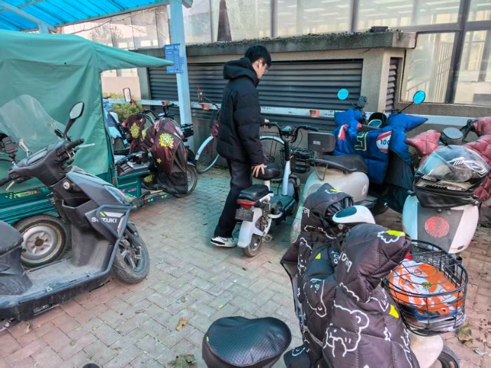 图为实践团成员整理电动车