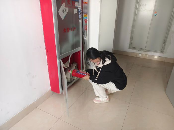 实践团成员系统检查了社区灭火器的使用状态。他们逐楼栋检查灭火器的放置位置、压力指示和有效期,记录每个灭火器的具体情况。对于过期或损坏的灭火器,成员们贴上标签并汇总清单提交物业处理。