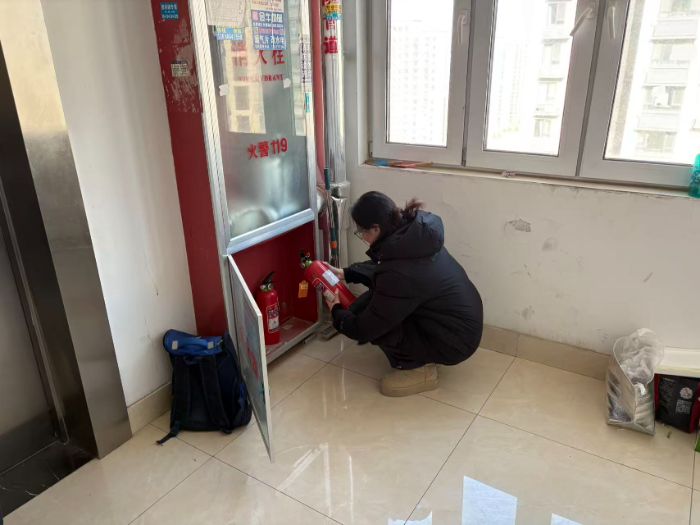 在消防安全检查环节,实践团对社区内各楼栋配置的灭火器进行了逐具查验。成员们仔细核对灭火器生产日期、压力值及有效期限,对临近过期或压力不足的设备进行了登记汇总,并将检查结果反馈给物业管理部门,为社区消防安全提供了数据支撑。
