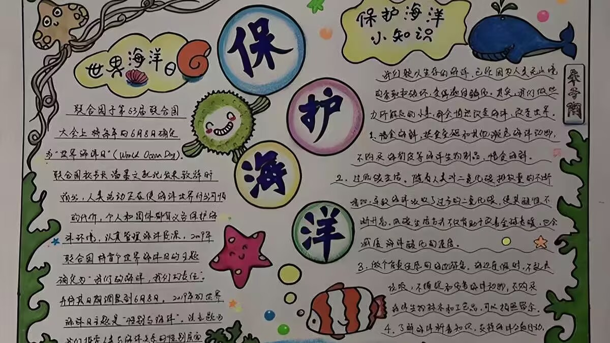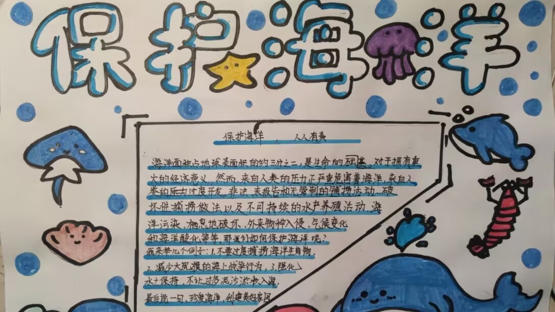 (图为保护海洋的手抄报。刘涛 供图)