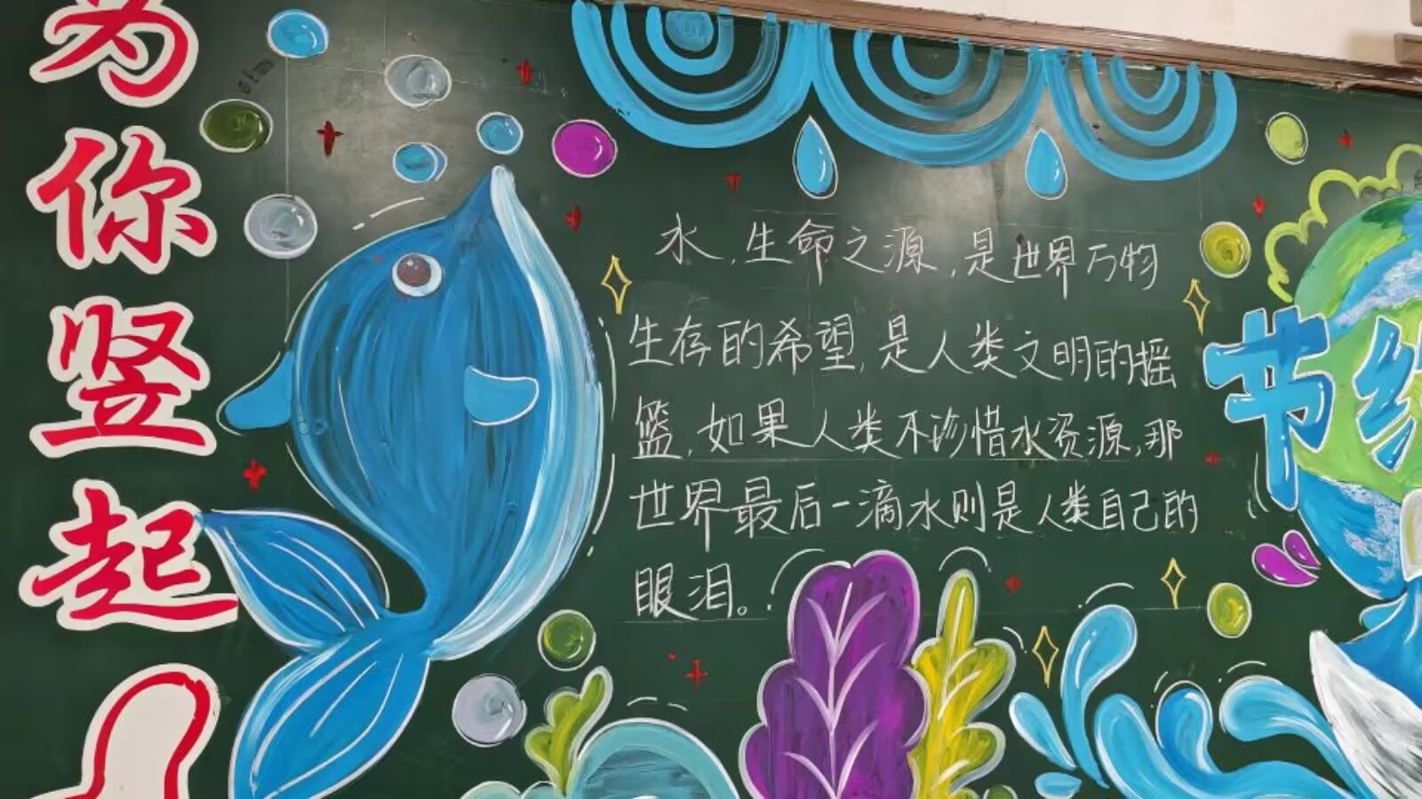 (图为节约水源的黑板报。苗思浓 供图)