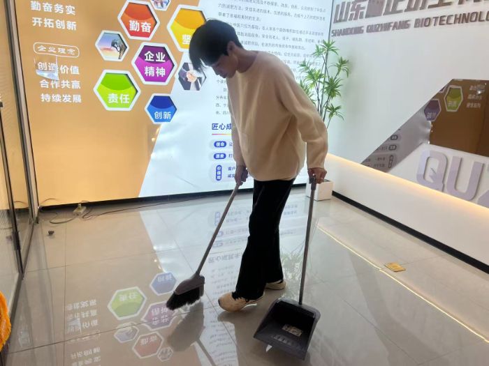 实践团成员积极参与打扫卫生工作。他们分组对公司办公区、会议室、走廊及厂区周边环境进行了全面清洁,包括擦拭门窗、清扫地面、整理杂物和垃圾分类。