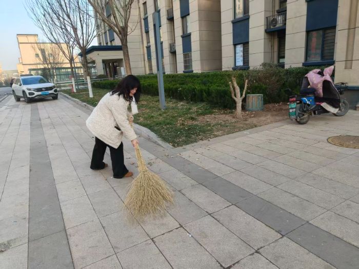 实践团对社区路面进行了全面清扫。成员们使用扫帚、簸箕等工具,沿主干道和偏僻角落清除尘土、落叶、碎石等杂物。清扫过程覆盖了公共活动区域和步行路径,显著提升了路面的清洁度,减少了扬尘污染,增强了社区整体卫生水平。