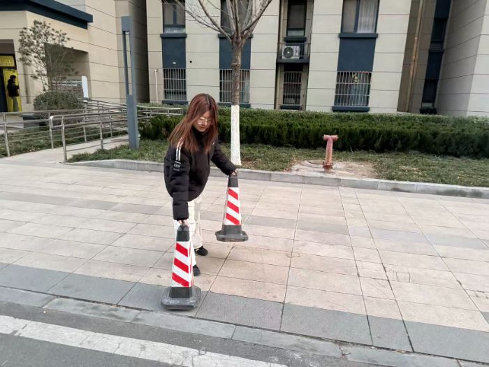 为进一步规范社区车辆秩序、提示行车安全,成员们在小区内部道路的关键路口及转弯处,合理摆放了交通反光锥桶。这一举措有助于引导车辆减速慢行、规范行驶路线,为社区营造了更为有序安全的交通环境。