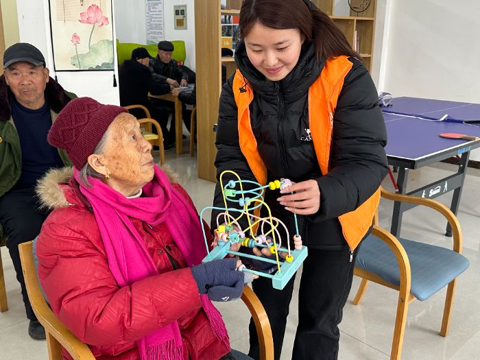 为丰富老人的精神文化生活,实践团还精心准备了适合长者的互动小游戏。在确保安全的前提下,他们陪伴老人参与游戏,活动现场时常传出欢快的笑声。游戏环节有效活跃了气氛,锻炼了老人的思维与动手能力。