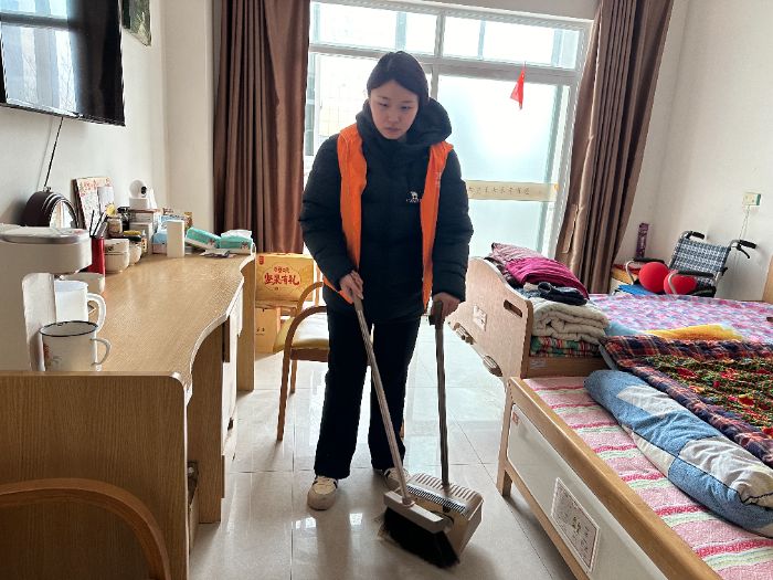 实践中,团队成员对医务室地面进行了彻底清扫。他们使用扫帚、拖把等工具,仔细清理了各个角落的灰尘与杂物,确保地面洁净无污。这一基础工作为老人们日常活动与医护工作开展提供了整洁、安全的环境保障。