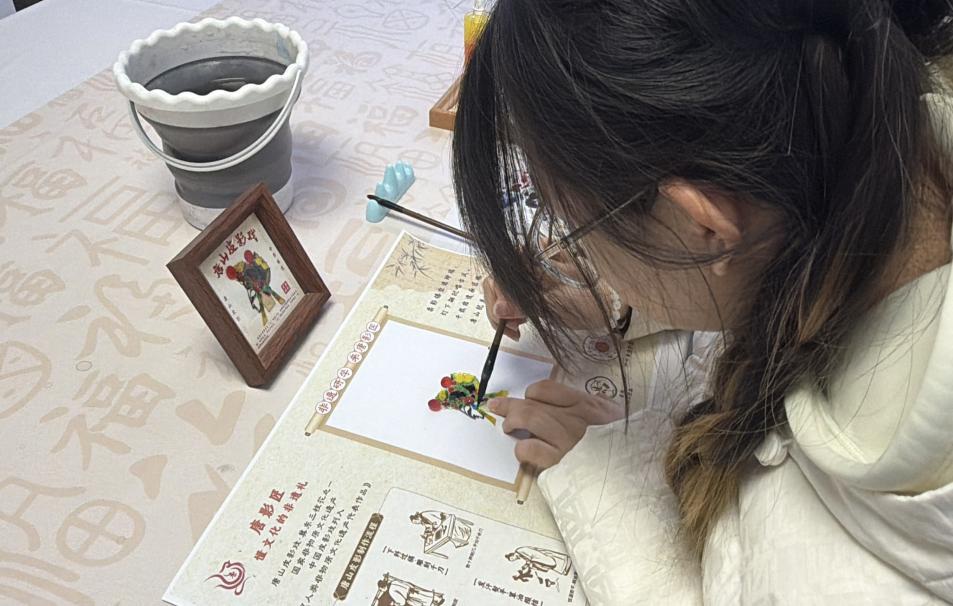 (图为在唐影匠工作室为皮影填色的照片唐思宇供图)