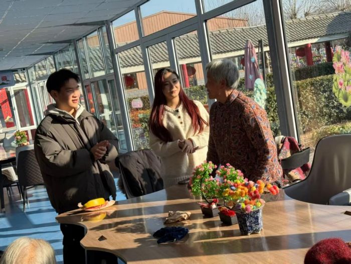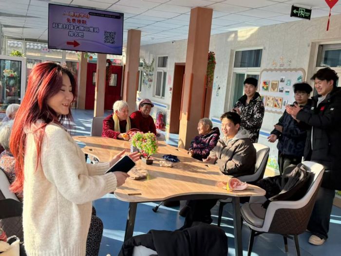 实践期间,成员们深入养老中心各生活区域,为老人们带去多元化的陪伴与关怀。活动室内,年轻的歌声与经典的旋律交织,实践团成员与老人们共唱老歌,现场气氛温馨热烈,一首首经典老歌的合唱拉近了彼此距离,笑容在歌声中荡漾。
