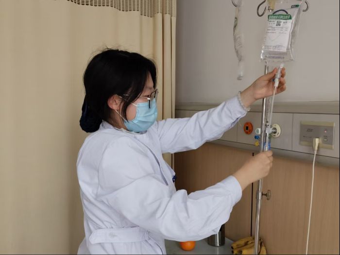 成员们还承担了部分基础护理任务。在严格遵循无菌操作原则并经过专业培训后,他们协助护士进行静脉输液准备工作,并细心照看正在输液的病人,及时观察点滴进度,展现了严谨负责的态度。