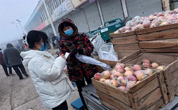 实践团队走访李庄为深入调研当地数字普惠金融的发展情况。队长采访了正在零售苹果的王大妈“您好,您有因为要给果树打农药施肥在农行进行过小额贷款吗?”王大妈非常诚挚“没有,我不知道怎么在农行进行小额贷款。”
