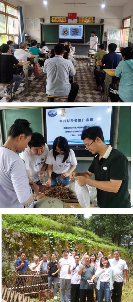 服务团赴归柳小学开展基础教育领域的第一项对口帮扶活动——向归柳小学教师及村干部宣讲中药材种植技术,是对口帮扶致富创收领域的重要组成部分。服务团成员司成向到会来宾展示了本次推广种植的四种中药材,地黄、当归、玉竹、防风,并对这四种药材的种植技术展开了详细的介绍。随后,司成带领大家来到百草园的药田开展案例式现场教学,针对百草园种植地黄的田间管理向来宾做了演示。最后,服务团向来宾赠送中药材种苗和中药材种植宣讲读本。