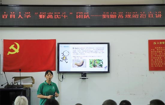 (团队成员正在科普讲解蚂蟥的分类与防治)