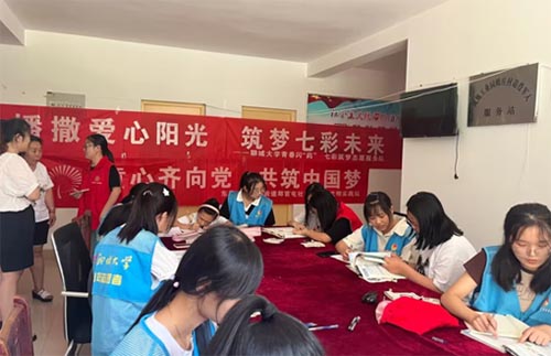 为使学生走出校园体会社会冷暖、走进社会、关爱社会,将爱心传递的同时充分发挥学生特长,为儿童打造一片暖心天地,7月6日,聊城大学药学院青春闪“药”,七彩筑梦志愿服务队于聊城市姚庄小区举办以“播撒爱心阳光,筑梦七彩未来”为主题的社会实践活动。