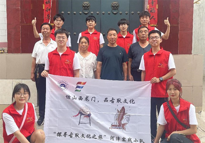 实践小队与“迎春”锣鼓队成员进行合影留恋图