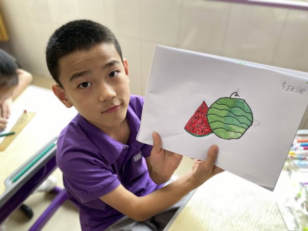 图为李政润同学展示自己的绘画成果 通讯员 王森