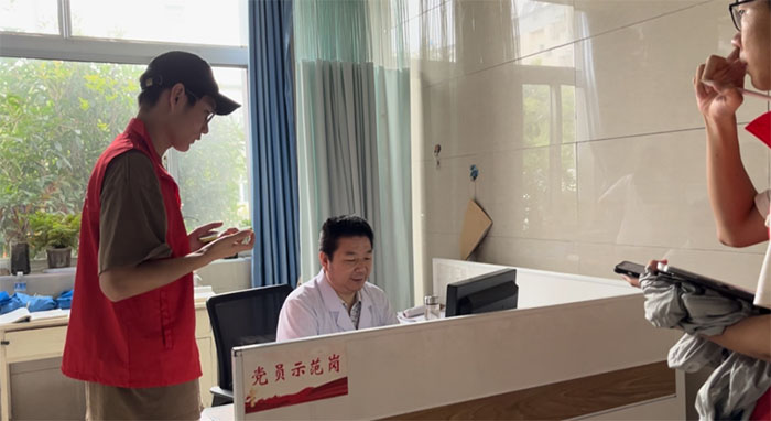 心系百姓真诚“卫”民在国务院印发的《关于进一步完善医疗卫生服务体系的意见》中,家庭医生制度引起了小队成员的注意,小队成员与徐州市邳城镇卫生院取得联系,了解了这一特殊的签约服务模式。