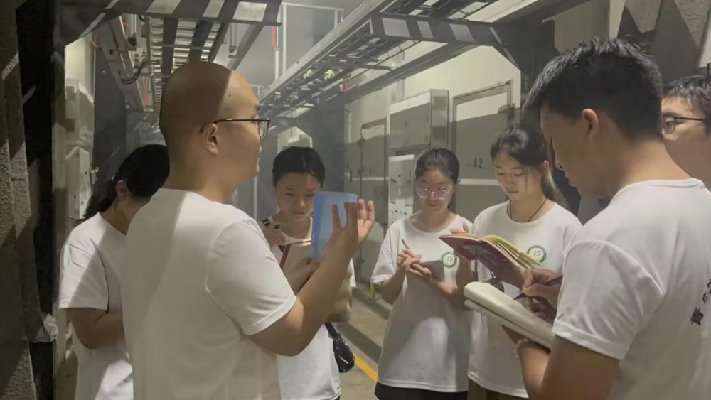 随后,实践团成员来到生育室学习下一步工艺流程——“套筒”,杨永占说:“这一步骤是为了让金针菇长得更加美观,让其定性,变成上松下紧的骨朵性。并且考虑到生长所需的必要条件,我们进行数字化的管理,根据不同的蘑菇种类,将生育室的温度、湿度、二氧化碳等相关生长因素调节到最适温度。”最后通过一段时间的培养,成熟美观的金针菇进行包装,由运输带传送到包装车间进行切根、称重、打包后进行销售。
