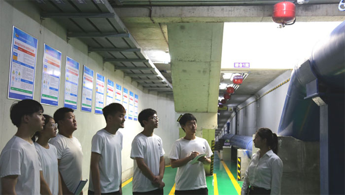 随后小分队深入地下综合管廊。曹雨介绍道,为了保障地下综合管廊的安全,提高地下综合管廊运维水平、应急能力和经营管理水平,徐圩新区地下综合管廊采用了云计算、大数据、物联网、GIS、BIM等高新技术,真正实现公共管廊信息化。此外,管廊的应急疏散、应急救援通道也让队员们感受到“备豫不虞,为国常道”的意义。