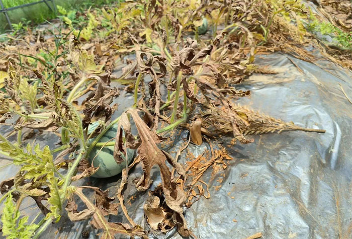 图为实践团治理受病虫害的西瓜田