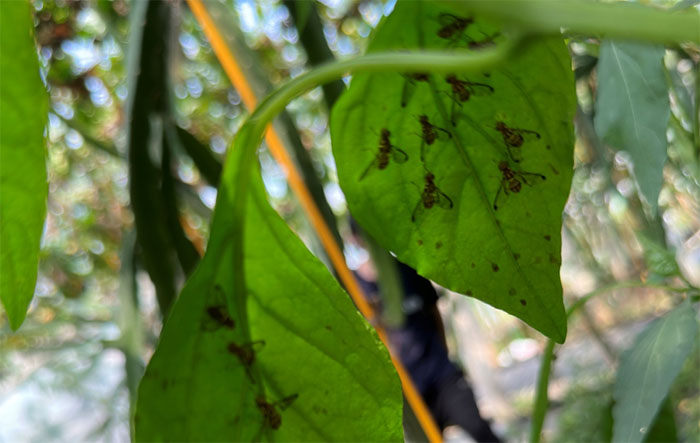图为植株上的大量南亚果实蝇