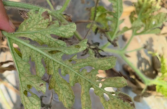 图为受西瓜红蜘蛛危害的植株