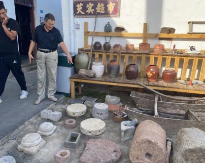 图为当地村民为实践团介绍曾经各类农村器材。爱开大学生网通讯员 徐璟琦 摄