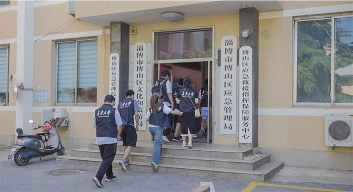 图为长安大学赴山东淄博“探数字赋能 助乡村振兴”暑期社会实践团队成员进入淄博博山文旅局。