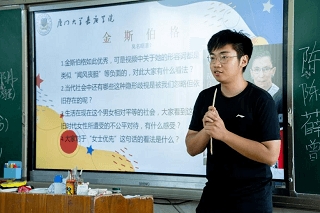 第三天的讲座主题是《女孩也很有力量》。实践队的“小老师”在课堂上放映了关于美国联邦最高法院女性大法官金斯伯格的视频。通过视频中对金斯伯格的生平介绍和她在推动女性权益方面做出的努力,“小老师”激励在座的各位女孩们向如张桂梅、金斯伯格等的优秀女性看齐,学习她们坚忍不拔、追求独立的品质和敢于担当、敢于挑战的勇气,启发女孩们:“无论男性还是女性,每一个人都可以通过自己的努力,不做他人的附庸,成为闪闪发光的自己。”