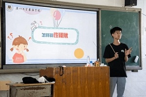 厦门大学嘉庚学院三下乡队伍山花烂漫实践队深入福建平潭,进行儿童生理知识科普。