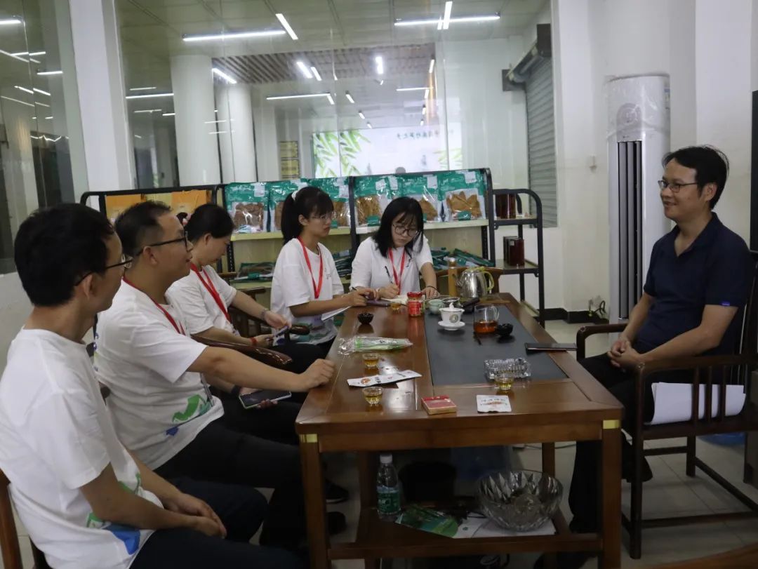 实践队首先来到英德华笋食品有限公司,公司负责人胡兵安为我们讲解了麻竹笋的历史、功效,以及目前麻竹笋的的发展状况,还为团队介绍了公司的麻竹笋产品,并邀请同学们品尝了公司几种麻竹笋食品,同时也向团队介绍了麻竹笋直播带货的相关经验。
