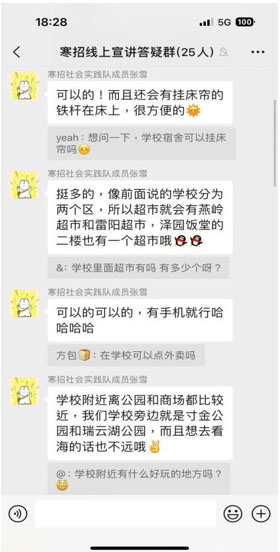 面对高三学生学业繁重的现实,寒招小分队经过与校方及教师的充分沟通,将原本的线下活动转为线上线下相结合的形式。他们深知,这样的调整不仅能更好地服务于学生,也能提高招生宣传的效果。因此,他们迅速建立了线上宣讲答疑群,为学生提供答疑解惑的机会。