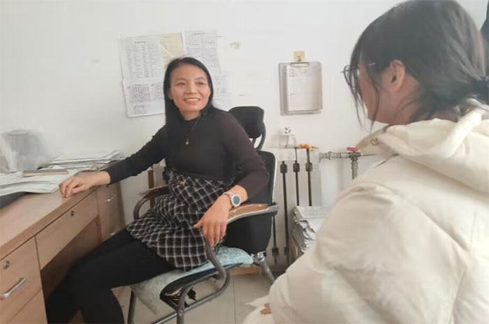 图为实践队员郑佳慧回访母校,与老师深入交谈。通讯员 郑佳慧 供图