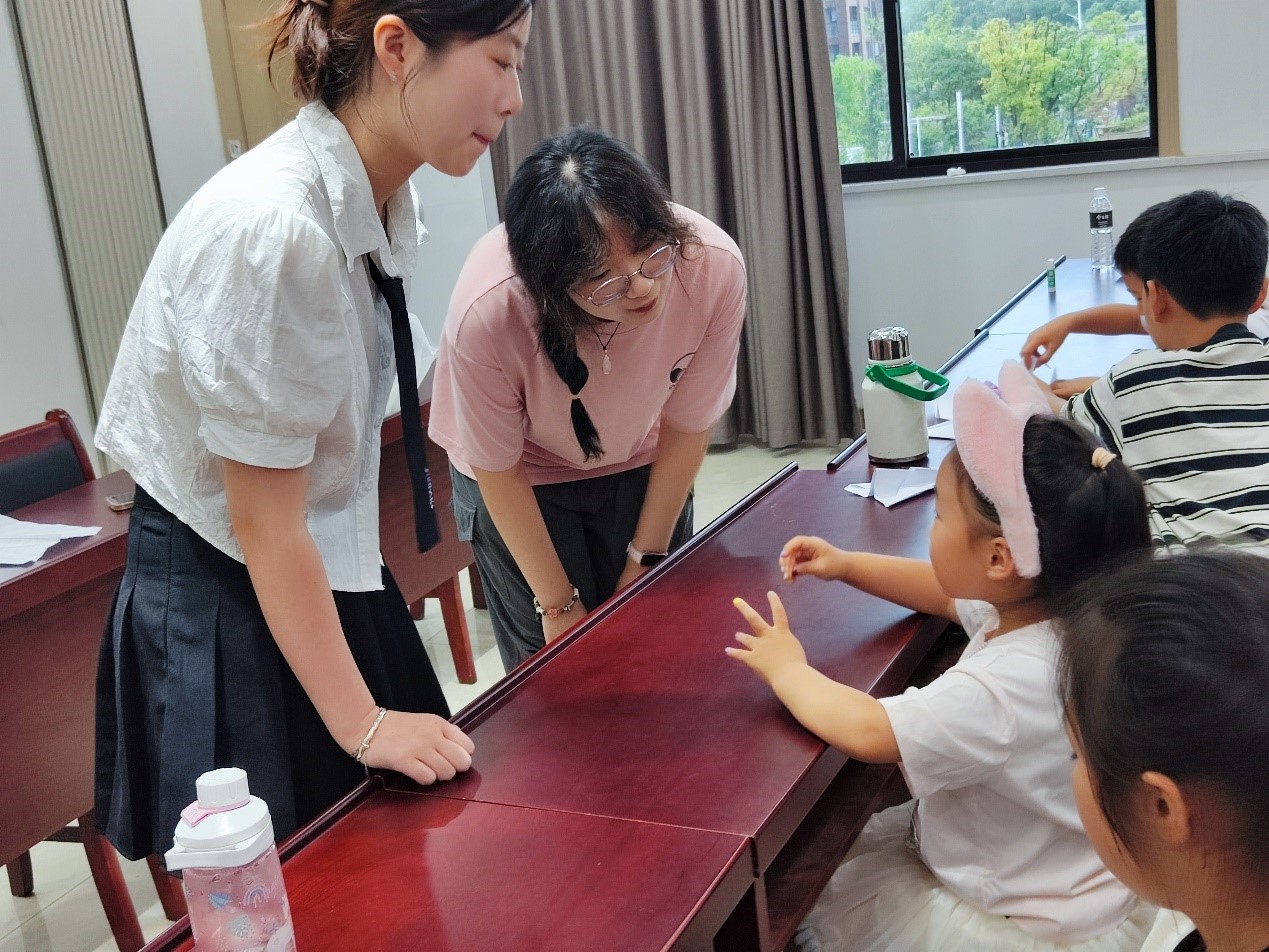 图为实践队员协助小朋友共同制作纸飞机 通讯员 孟登峰 摄