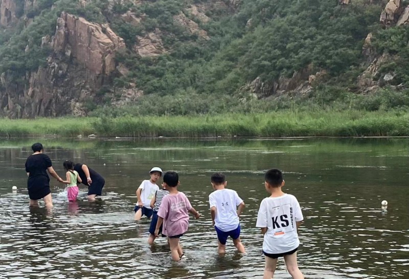 7月19日,团队成员协助齐齐哈尔市克山县阳光幼儿园的老师和家长带领孩子们来到了小河边玩水。绿树村边合,青山郭外斜,一副副诗意栖居的生态画卷在孩子们眼前徐徐展开。为了保证孩子们的安全,团队成员在确保每位小朋友都有家长陪同的情况下,引导大家感受水流的温柔与力量,学习珍惜水资源的重要性。团队成员深刻体会到,孩子们在自然中自由探索,是培养他们环保意识与爱护之心最好的方式。
