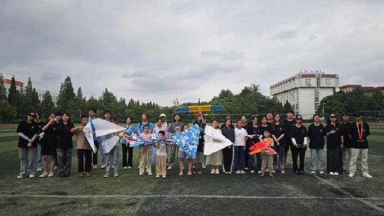 (图为孩子们与巢湖学院航模队成员进行互动)