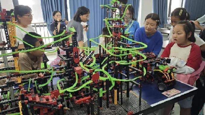 (图为孩子们参观云霄飞车模型)