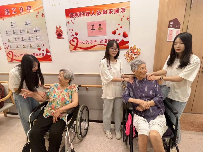 实践团成员到济南颐养中心后,负责人立即与颐养中心的负责人进行对接。随后实践团成员在负责人的安排下开展了关爱老人的实践工作,活动分成多个部分:为老人按摩,陪伴老人聊天,为老人挪移桌椅、表演歌舞等。活动期间,实践团成员为老人们提供按摩服务,对老人们进行一定的康复护理。老人们在按摩中放松身心,感受到关怀和温暖。