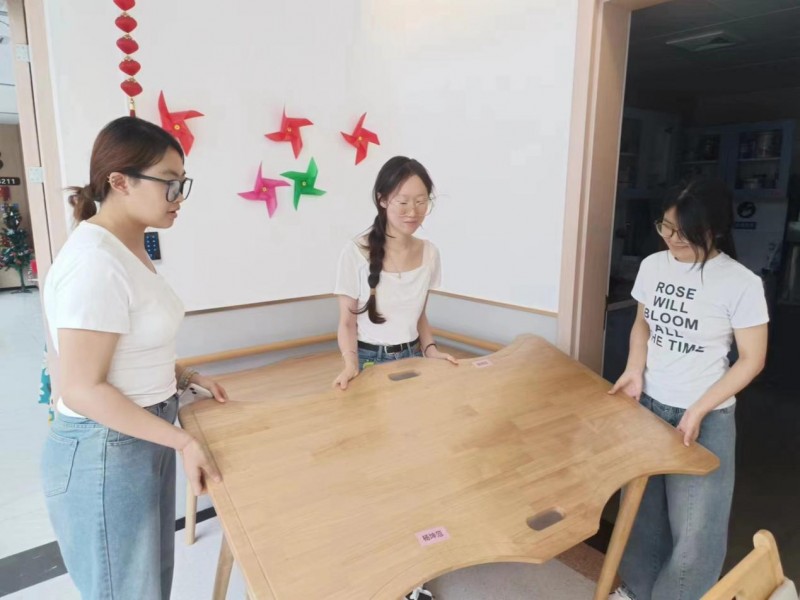 此外,“康养送爱”实践团还特别关注了老人的生活环境,实践团成员齐心协力,小心翼翼地将沉重的桌子搬到合适的位置,成员们用实际行动为老人们营造更舒适的生活环境。