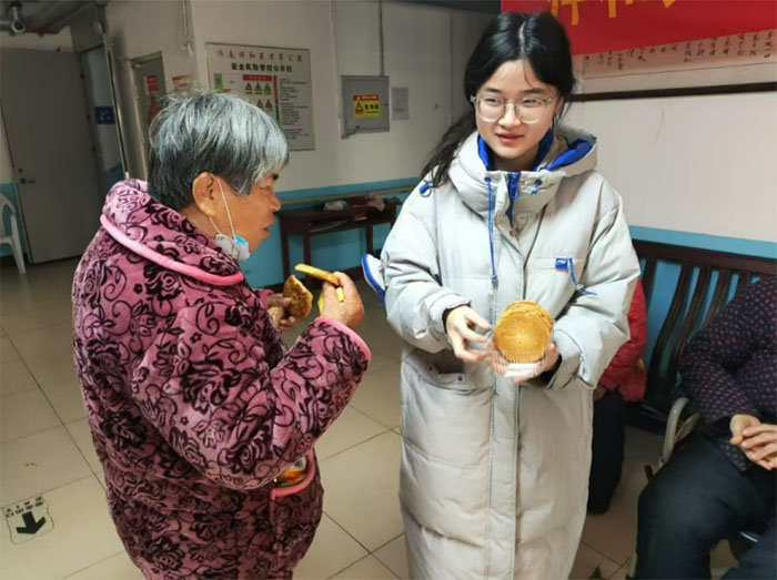 每天午后,实践团会将准备好的点心分发给老人。当老人们接过点心时,脸上洋溢着幸福的笑容,纷纷夸赞点心好吃。实践团边发点心边和老人唠着家常,询问他们最近身体可好,有没有什么想要的东西。大家你一言我一语,让原本安静的养老院充满欢声笑语。