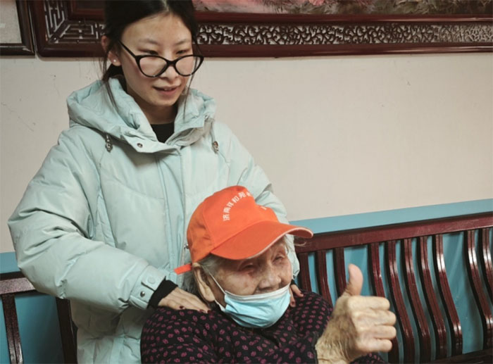 实践团在陪老人聊天的同时,还贴心地给老人们按摩放松。老人们的脸上洋溢着幸福的笑容,他们被实践团的关爱所打动,其中一位老人情不自禁地为实践团竖起大拇指,眼神里满是赞许