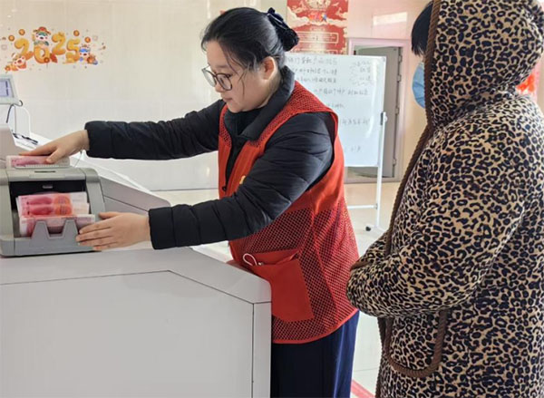 营业前,李淑娟会仔细检查营业环境,擦拭柜台、整理宣传资料,还会认真调试各类服务设备,确保营业时能正常使用。营业期间,志愿者李淑娟的身影在大厅中忙碌不停,在引导客户取号时,能根据客户需求进行合理分流。