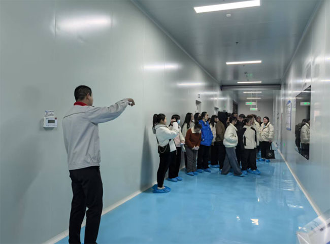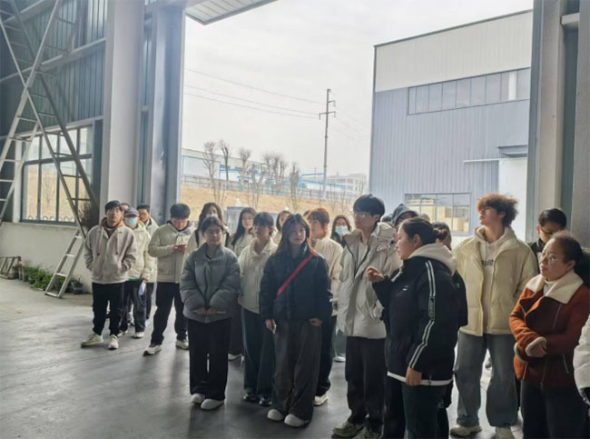 在中博金属,学子们先是在厂区内看到了许多成堆摆放的产品原材料铝卷随后又于展示厅里看到了各种各样的铝制品如航空餐盒、易拉罐、包装盒等。公司代表详细介绍了该公司的铝制品加工过程以及厂区组成与人员分工,并向学子们抛出橄榄枝。学子们在代表的热情接待下增强了对金属材料及其加工技术的认知水平,并对行业现况和发展趋势有了了解,为未来的职业规划奠定基础。