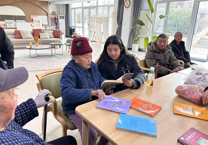 特别是在与老人们共读书籍的活动中,几位成员与老人们共同阅读并交流书中的故事,老人们眼中闪烁着智慧与温暖的光芒。大家沉浸在书本带来的精神世界中,彼此间的距离也在不知不觉中拉近了。