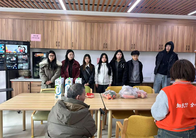 在活动初期,实践团成员首先为养老中心的老人们送去了生活用品,包括蔬菜、水果、牛奶等日常必需品,旨在提升老人们的生活质量。团队成员和老人们互动,温馨的场面让每一位在场的人都感受到了浓浓的爱心。