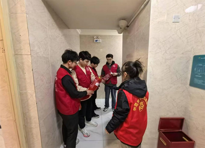 为了深入民生,了解需求“飞腾”实践团成员于2025年2月25日--2025年3月2日来到河南省开封市龙亭区兴安社区开展了为期6天的社会实践活动。实践伊始,团员们身着鲜红的志愿服,携带消防宣传手册和灭火器,活跃在社区的每个角落。