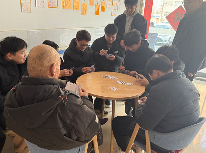 图为“华夏之阳”实践团成员和老人打牌
