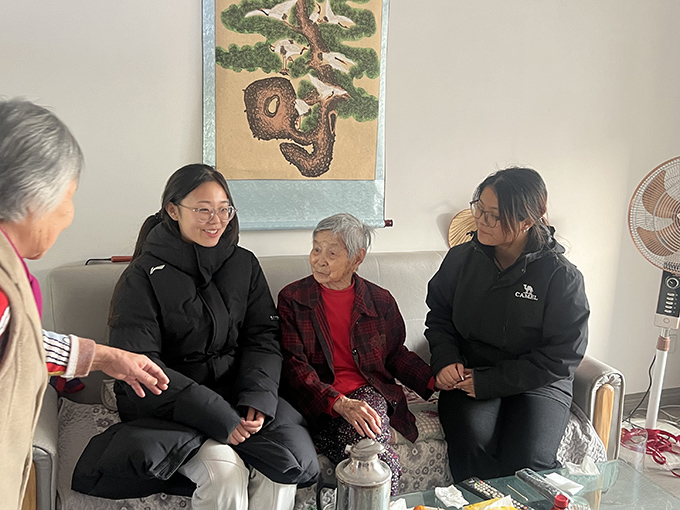 图为实践团成员对老人进行访谈与陪伴