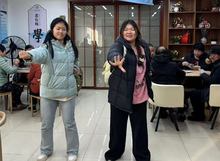 大学生们更是使出浑身解数积极组织文艺表演。悠扬的八段锦、欢快的舞蹈、妙趣横生的健康讲座,精彩纷呈的节目让老人们看得目不转睛,掌声和喝彩声此起彼伏。