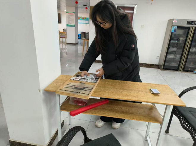 图为实践团鲁瑞馨收拾用完的扑克牌