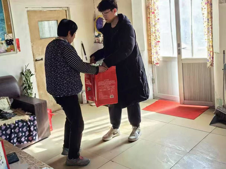 实践团成员走进社区,为老人送去米面粮油。老人们脸上绽放笑容,点滴善举汇聚温暖力量。此次活动为老人送去生活物资,传递了温暖与关爱。